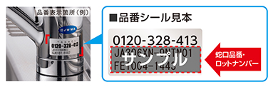 蛇口の品番は、下記のように蛇口根元の品番シールに記載されております。